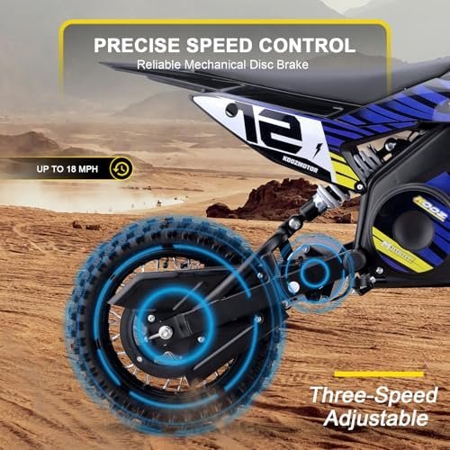 The 36V Electric Dirt Bike is built to handle the toughest conditions, thanks to its durable steel frame. Its chain drive transmission provides the reliability needed for confident navigation, while the adjustable speed control ranges from 6 to 18 mph, allowing riders to tailor their pace based on skill level and experience. The half-twist throttle contributes to a safer ride by offering better control, making it easier to tackle various terrains.