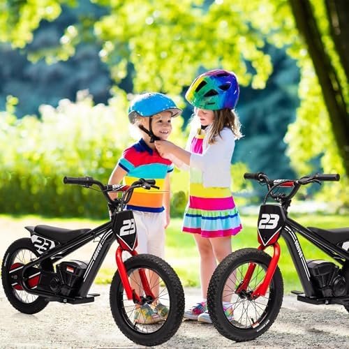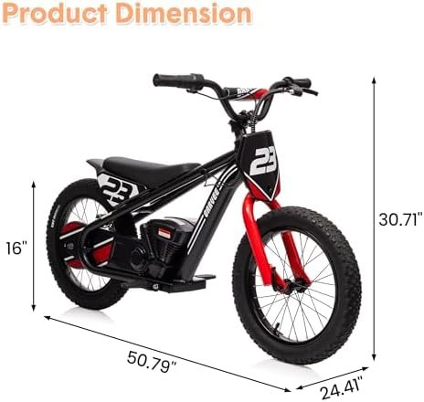 Introduce your child to the exhilarating world of outdoor adventures with the Euker Kid Electric Bike, a perfect amalgamation of excitement, safety, and practicality. Tailored for young riders aged 6 to 12, this lightweight electric dirt bike promises a thrilling off-road experience. Equipped with sturdy 16-inch wheels and a robust 360W motor, the bike is engineered for both performance and safety. Its sleek black aesthetic not only captivates the eye but also ensures a durable ride, allowing your child to explore various terrains with confidence. Whether they’re just starting their journey or already have some biking experience, this electric motorcycle meets their evolving needs.